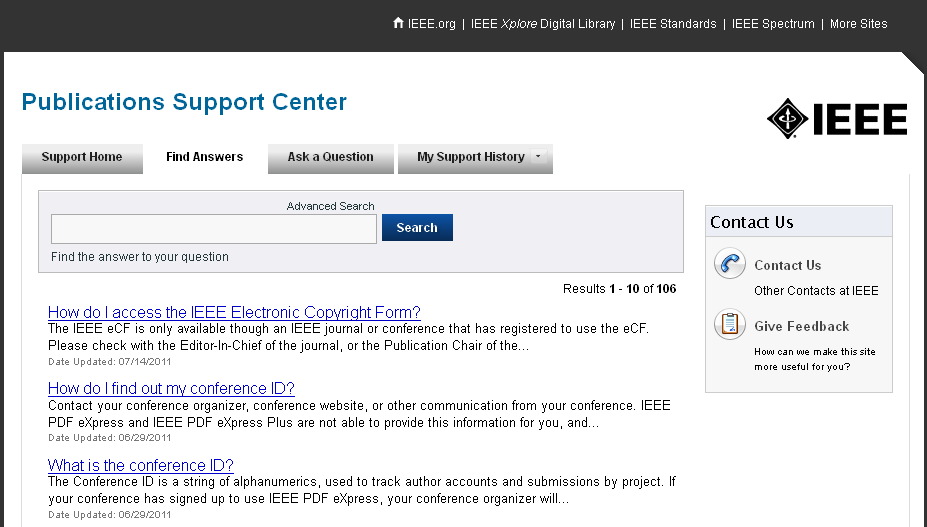 - If you do not find an answer in the Find Answers tab, go to the Ask A Question tab. Your question will be forwarded to IEEE PDF Support and answered within 3 business days.